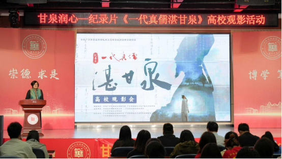 在纪录片放映环节,师生们共同观看了全面呈现明代心学大家湛若水生平事迹、学术思想与教育实践的影像资料。湛若水(号甘泉)作为与王阳明齐名的思想家,创立“甘泉学派”,一生创办书院近40所,弟子近4000人,为岭南文化的传承与发展作出了不可磨灭的贡献。