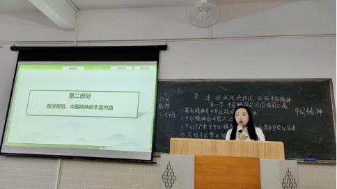 赵老师从“崇尚精神是中华民族的优秀传统”切入,精准讲解了中国精神的科学概念和深刻内涵,生动解读了伟大创造精神、伟大奋斗精神、伟大团结精神与伟大梦想精神的丰富蕴涵,通过巧妙嫁接历史典故、植入当代实践案例,引导学生穿越时空隧道,感知中华民族精神谱系的博大厚重,理解传承中华民族精神的历史自觉。授课有的放矢、言之有物、情理交融,赋予原理以深刻论证,还给予说教以现实关照和生活温度,让“中国精神”真正走进学生心灵。