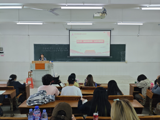 11月24日上午,校长廖俊杰教授来到图书馆501教室,听取了马克思主义学院惠攀老师讲授的《思想道德与法治》第三章第一节“中国精神是兴国强国之魂”的随堂课。教务处处长孙丽英、校督导专家朱君、魏育华、马克思主义学院副院长伍揆祁和部分没有课的思政课教师参加。