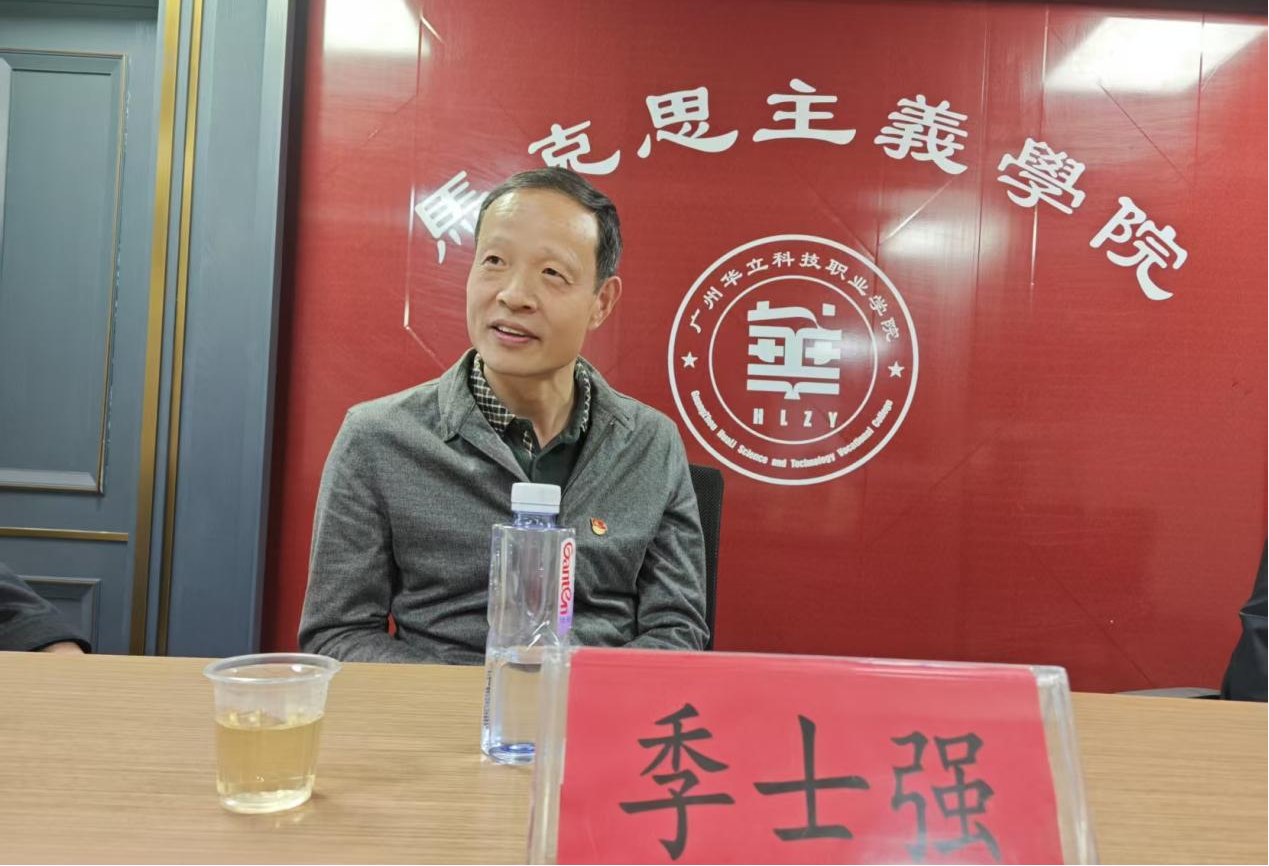 季士强博士在听取马院情况介绍后,认为广州华立科技职业学院马克思主义学院作为一所民办高校的马院,能有如此规模,并取得如此成绩,实属不易。他围绕思政课改革,特别是实践教学环节分享了他的经验。强调,思政课教学应着力阐释中国化时代化的马克思主义,注重理论联系实际,增强教学的思想性与针对性。他还结合职业院校特点分析指出,当前部分学生存在理论基础薄弱、学习兴趣不足、对课程价值认识不深等情况,职业院校教师则普遍面临教学任务重、科研压力大、发展路径受限等现实问题,亟待通过机制创新予以解决。