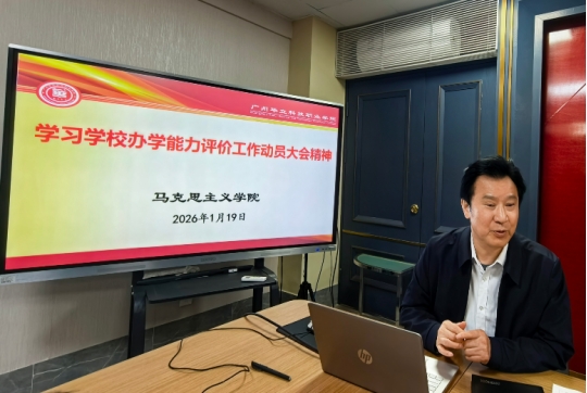 1月19日上午,马克思主义学院在G1-314会议室召开专题会议,深入学习学校办学能力评价动员大会精神,并就贯彻落实展开务实研讨。学院院长廖良初主持会议,副院长伍揆祁、各教研室主任及全体教师参会。
