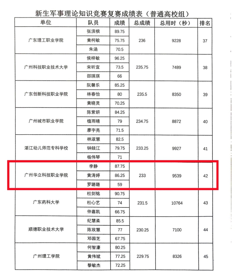 12月26日,由廖良初院长带队,李权老师担任指导老师,经济管理学院黄涛婷,罗璐璐和中医药学院李静三位同学参加“广东省普通高校2025级新生军事理论知识竞赛”圆满落幕。我校代表队在全省150所本、专科高校代表队同台竞技的激烈角逐中,凭借扎实的理论功底、默契的团队协作在众多参赛高校中脱颖而出,取得第42名的优异成绩,斩获优秀奖,充分展现了我校2025级新生良好的军事素养和精神风貌。