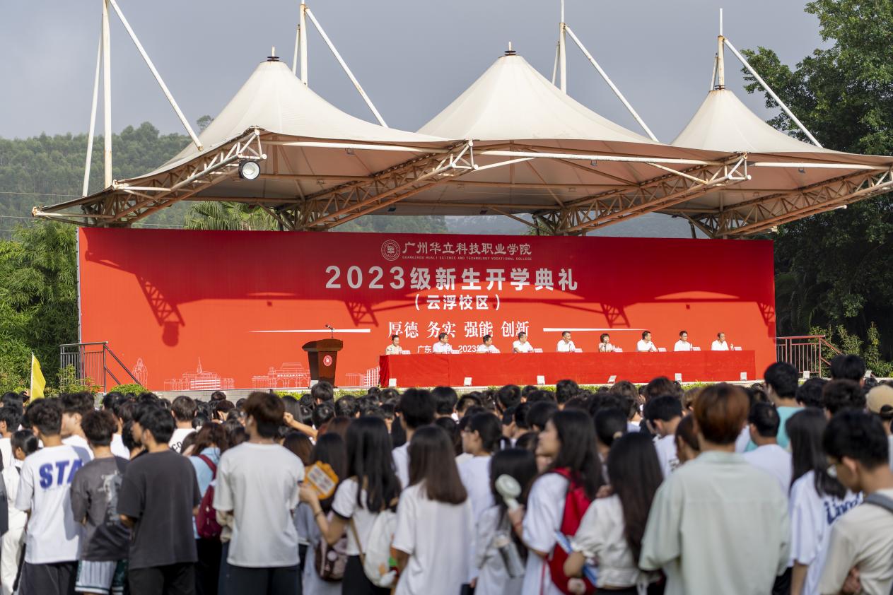 9月19日上午,广州华立科技职业学院云浮校区2023级新生开学典礼在云浮校区第一运动场举行。学校领导陈德清、王洪艳、张剑锋出席典礼,各职能部门负责人、各学院领导、全体辅导员、老生代表和云浮校区全体2023级新生参加开学典礼。校党委副书记、副校长王洪艳主持典礼。