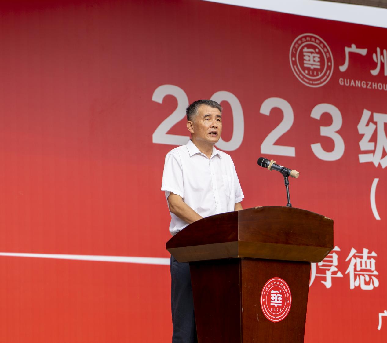 云浮校区负责人陈德清校长作2023级新生开学典礼讲话,代表学校对2023级新生的到来表示欢迎。他寄语新同学站在新的起点上,要继续发扬良好的学习精神,努力学习;要培养自主、高效学习习惯,要持之以恒,扎实基础;要多到教室、图书馆学知识,多到实训室练技能;要学会沟通,坚毅谦逊,开阔心胸,向阳而生,逐光而行;要积极参加各类集体活动;要加强锻炼,强健身体。要充分利用课余时间,多到运动场参加体育锻炼,学会运动技能,提高身体素质。陈德清还勉励同学们要自强不息、珍惜韶华、奋发有为,在华立书写无愧于时代、无愧于自己、无愧于未来的靓丽青春。