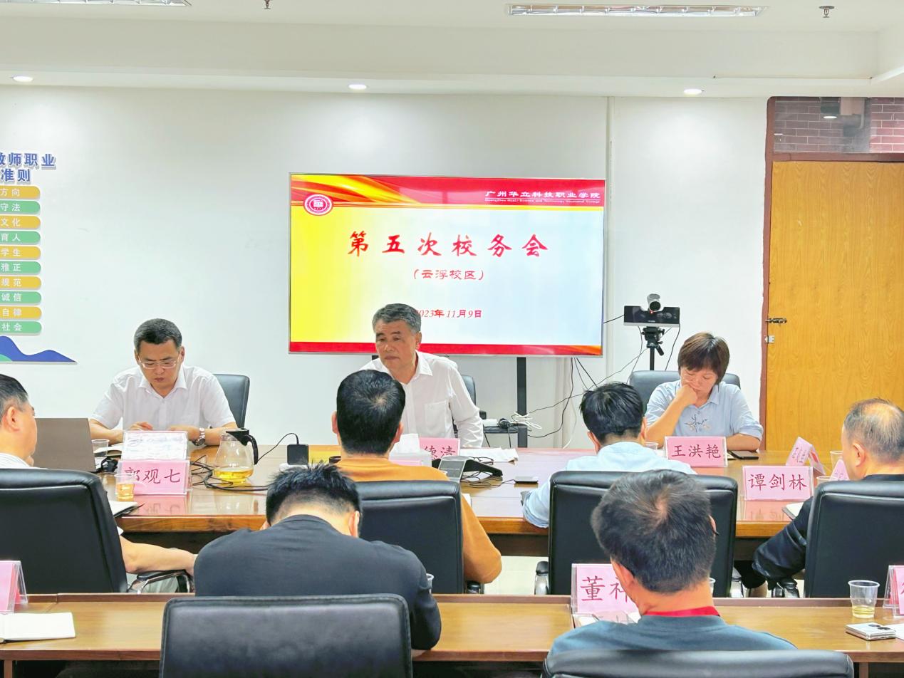 11月9日下午,华立职院云浮校区在图书馆七楼会议室召开本学期第五次校务会。校领导陈德清、王洪艳、张剑锋,各部门负责人、财务室有关负责人员参加会议。会议由云浮校区负责人陈德清主持。
