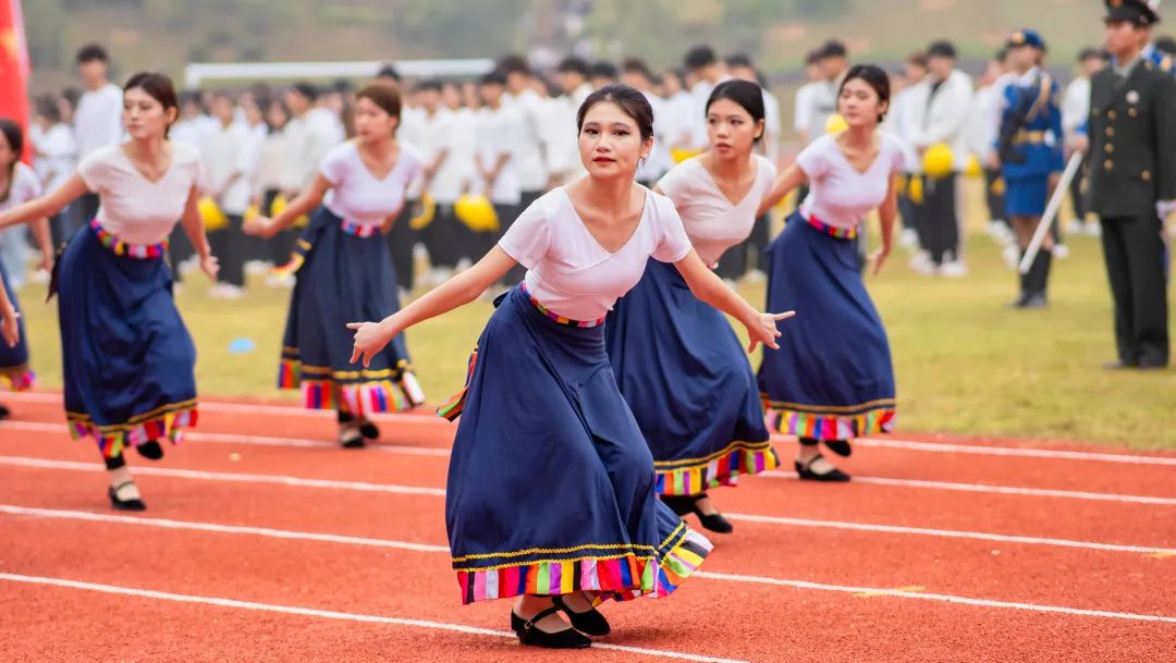 之后,精彩的文艺表演正式开始。教育学院的舞蹈表演《等你来》、学校街舞社团的节目《强国少年》以及学前教育专业同学带来的民族舞蹈串烧《民族团结一家亲》让现场掌声与欢呼声不断。