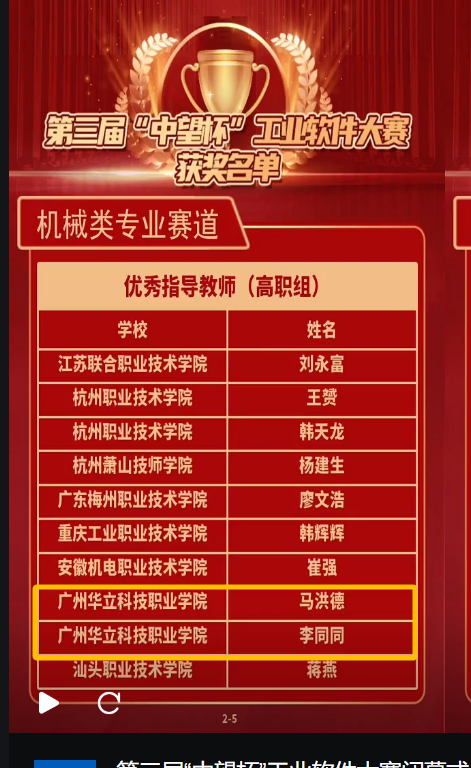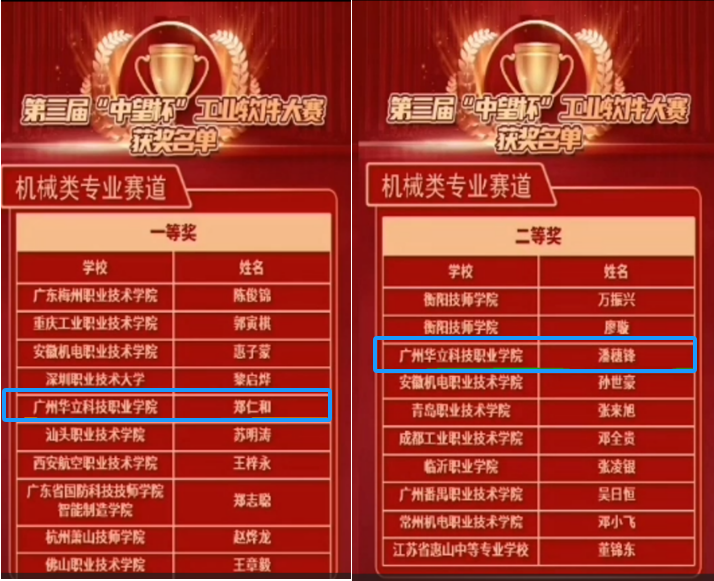 在我校隆重召开第四次党代会之际,又传来喜讯,我校云浮校区电力学院学子郑仁和在第三届全国“中望杯”工业软件大赛斩获一等奖,潘穗锋斩获二等奖,马洪德、李同同老师荣获“优秀指导教师”奖。