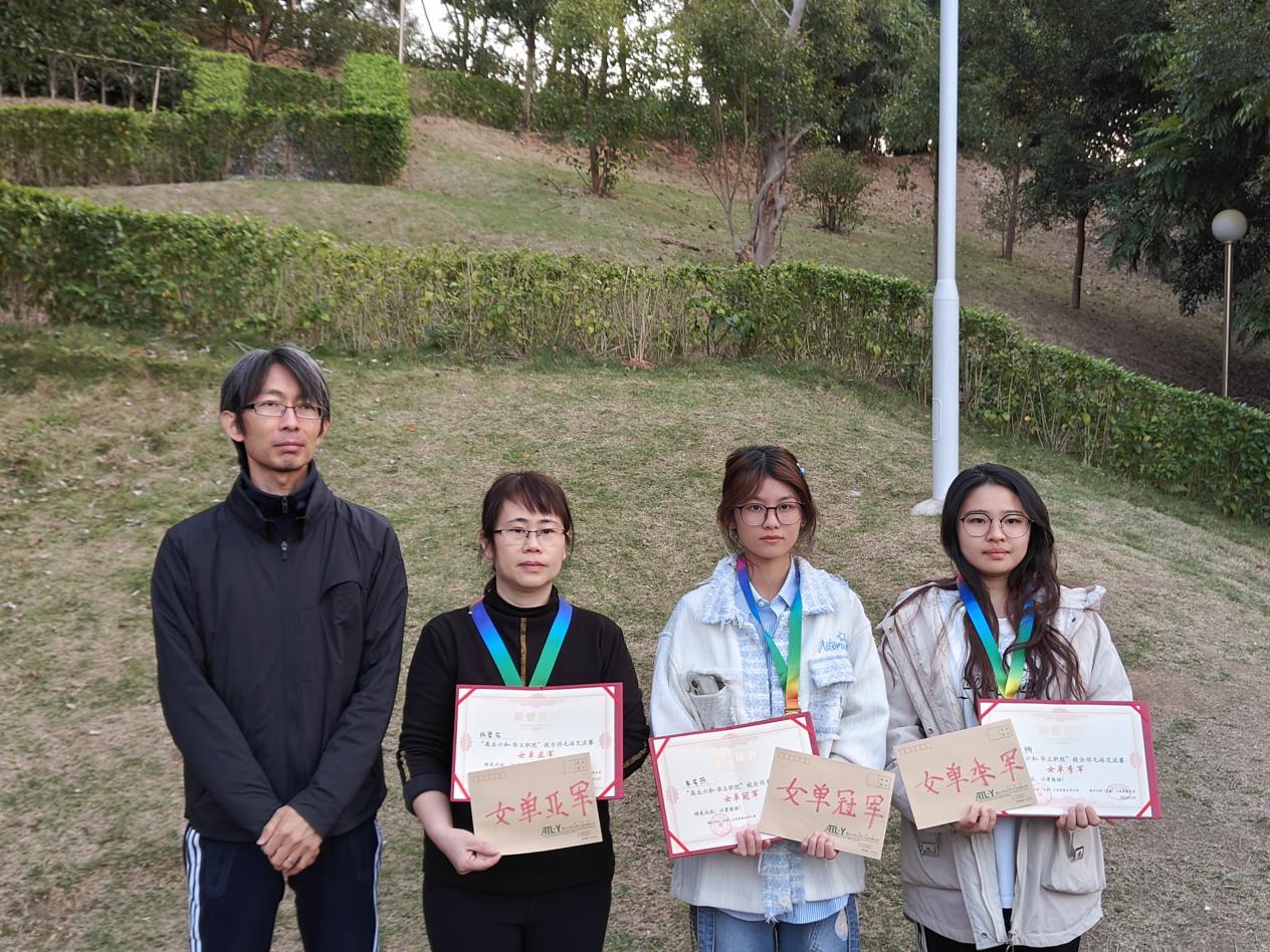 经过一下午的角逐,学生朱芳燕、学生石辉俊、学生马佳雄及朱君链(混合)分别斩获女单冠军、男单冠军、混合冠军;企业方祝碧花、学生钟羽宸、企业方洪梅及莫韶健(混合)分别获得女单亚军、男单亚军、混合亚军;学生许欣桐、学生吴德钧、教师陈彦均及学生吴绮静(混合)分别拿下女单季军、男单季军、混合季军。三浦宏晃、张剑锋、陈耀辉分别为获奖选手颁奖。