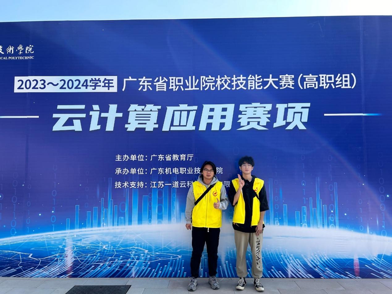 近日,由省教育厅主办的2023-2024年广东省职业院校技能大赛传来喜讯,由我校计算机信息工程学院(云浮校区)刘瑞阳、刘木友老师指导的参赛学生陈德林、刘千瑞在激烈的比赛中,凭借扎实的专业基础、训练有素的竞赛能力和稳定出色的发挥,荣获省赛(高职组)云计算机应用赛项三等奖!
