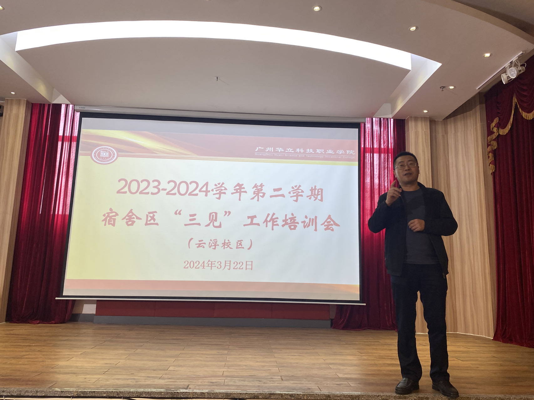 3月22日下午,我校云浮校区学生处组织开展宿舍区域“三见”工作培训,学校党委副书记、副校长高尧来,学生处副处长李同同,学生处处长助理曹广福及全体辅导员参加会议。