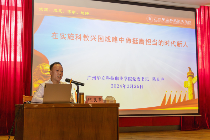 3月26日下午,学校党委书记陈良声走进云浮校区图书馆一楼报告厅思政课堂,以“在实施科教兴国战略中做挺膺担当的时代新人”为题,为云浮校区师生讲授了一堂精彩的思政课。党委副书记、副校长高尧来,马克思主义学院教师、党委办公室和云浮校区党务干部参加听课。