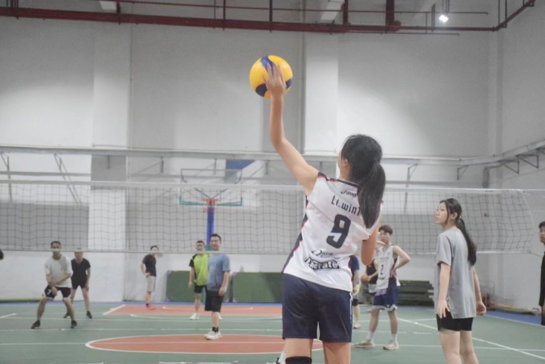 此次比赛分为热身赛、竞技赛以及娱乐赛,旨在提高大家的身体素质和勇于拼搏的精神。随着主裁判的哨声,场上队员在球网两侧攻守往来,顽强搏杀,紧咬的分数让比赛的高潮迭起;场上场下队员们团结一心,让每一个球都凝聚着智慧与团结,整个赛场上充满呐喊,激情澎湃。