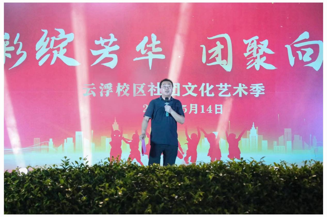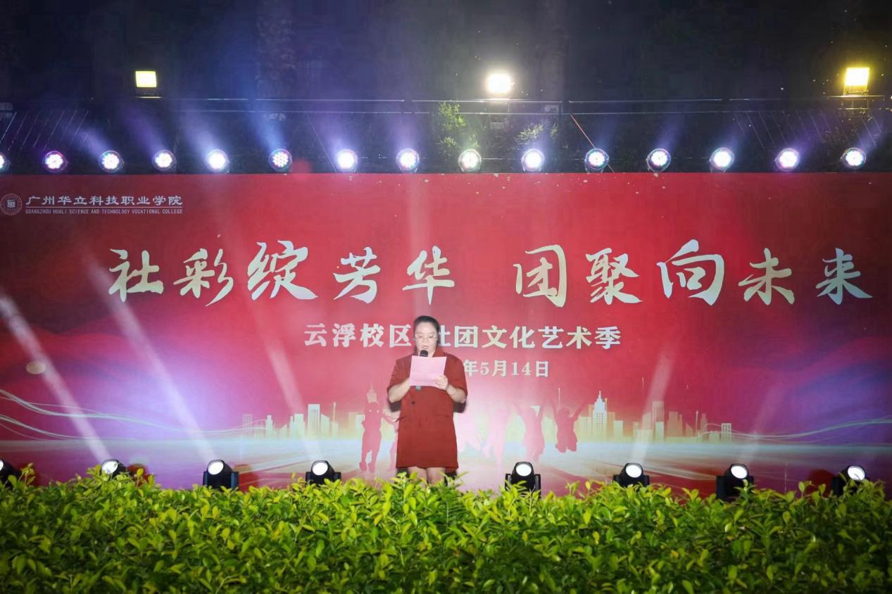 云浮校区团委书记宋依谜宣读《广州华立科技职业学院云浮校区举办社团文化艺术季的通知》文件。