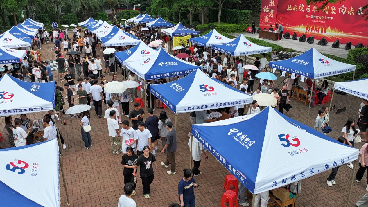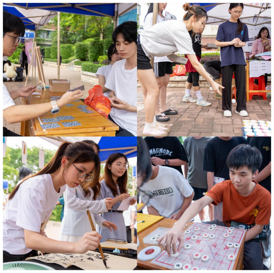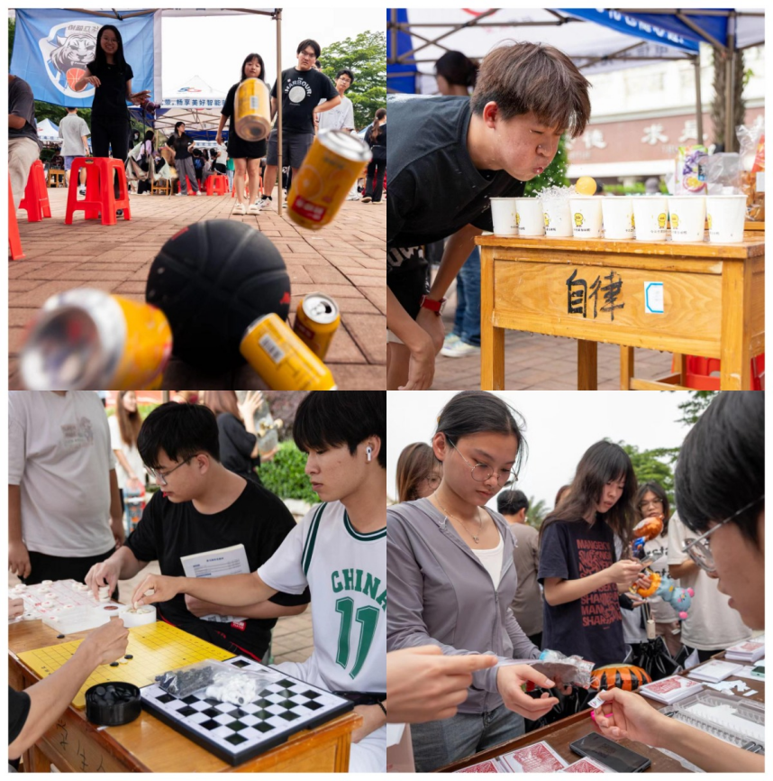 人头攒动,气氛热烈。同学们纷纷拿出自己的看家本领,展示社团的独特魅力。投壶、套圈等一个个精妙有趣的特色游戏,一份份精美的奖品礼物,一曲曲悦耳动听的歌声,一次次亮点纷呈的表演,游戏互动,踊跃参与,乐在其中。青春的奇思妙想和校园的社团文化交织在一起,为我们带来了一场沉浸式校园社团文化活动盛宴。