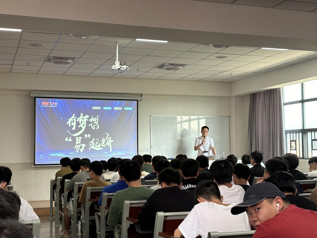 易事特集团股份有限公司513日在多媒体教室宣讲会,向22输配电、电力专业232名学生介绍行业发展、企业文化、企业业务范围等,企业宣讲人戴世洪以多个真实案例展示现实工作环境,让同学们更加直观体会工作内容。