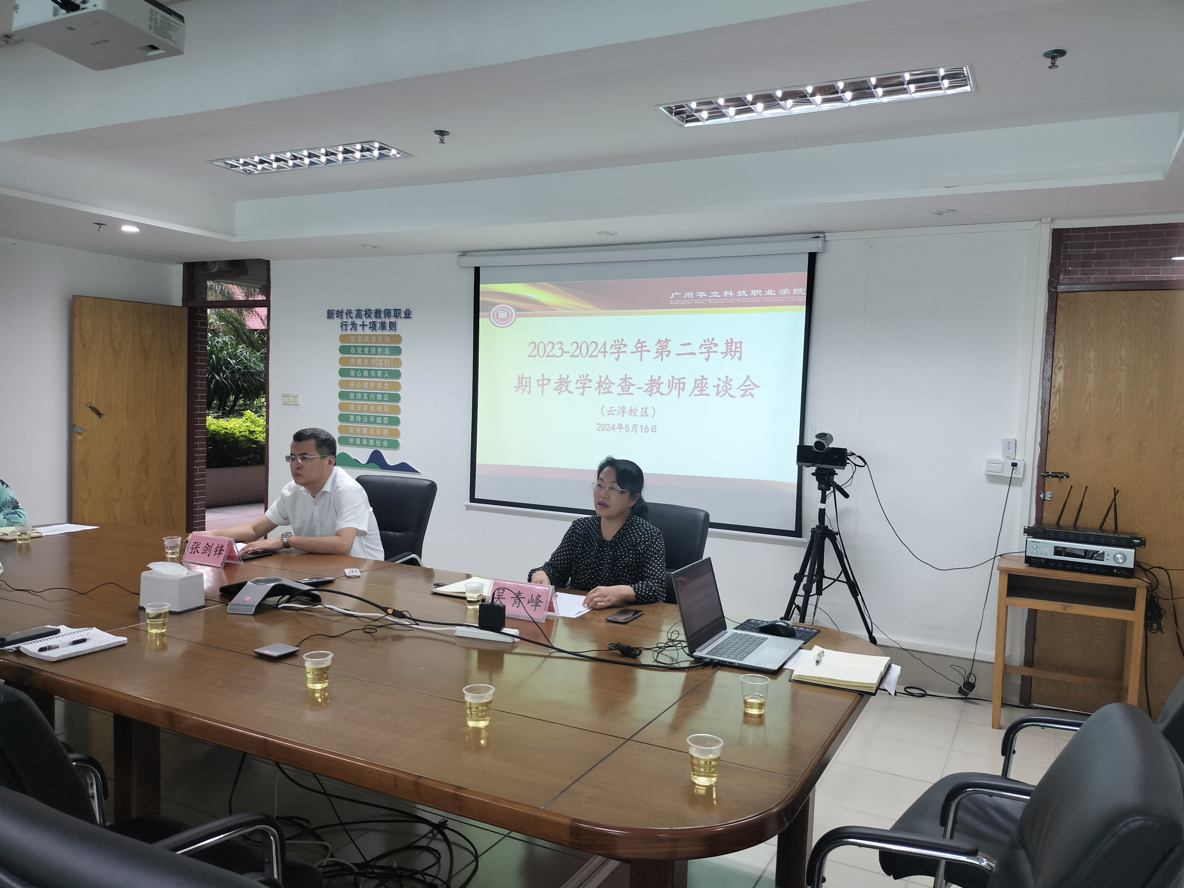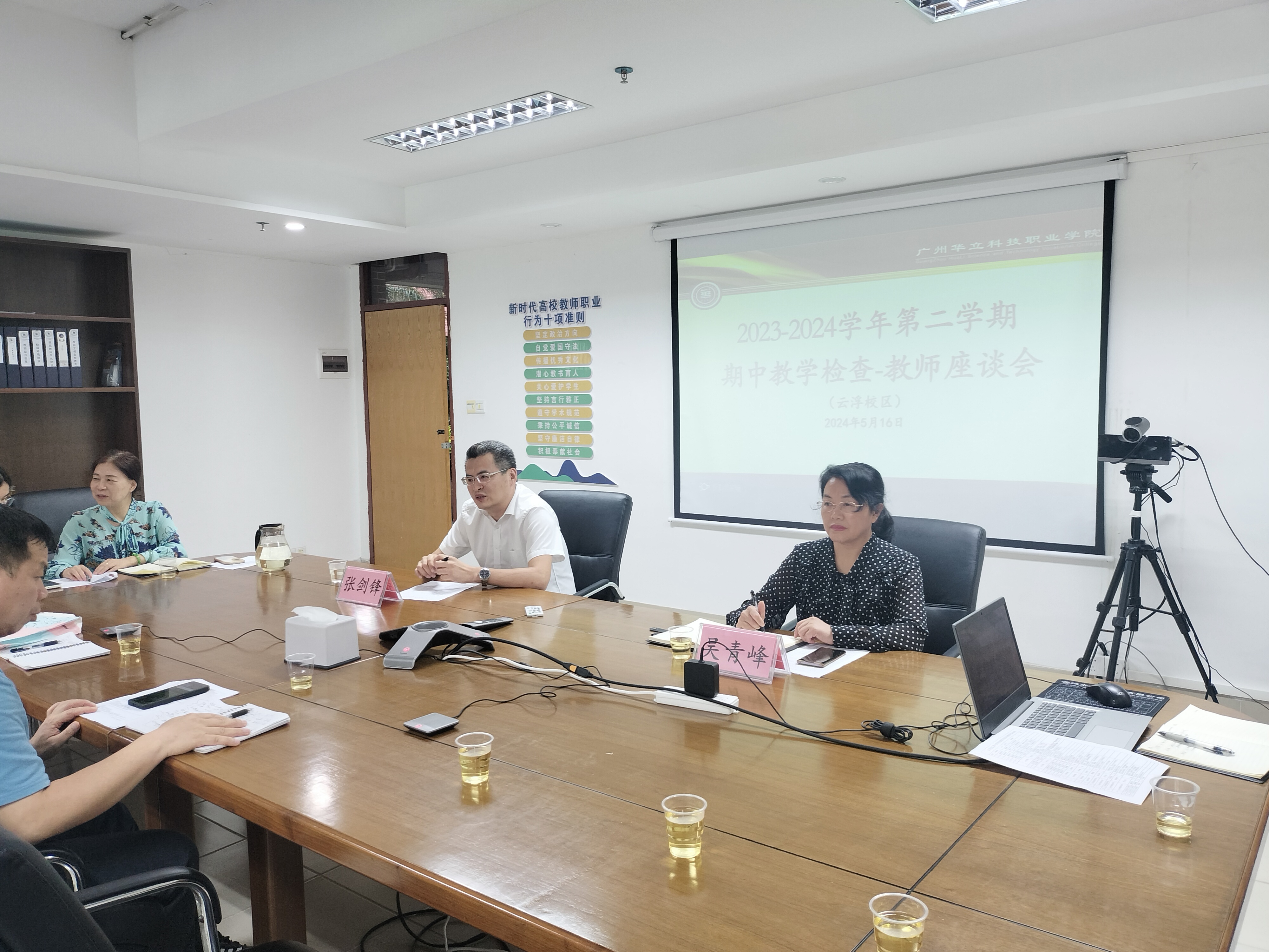 为全面了解教师日常教学情况,了解教师对学校教育教学及教学管理等方面的意见和建议,及时发现教学过程中存在的问题,提高教学质量,根据学校关于期中教学检查工作的整体安排,5月16日下午,我校云浮校区教务处在图书馆七楼会议室召开期中教学检查教师座谈会。校长助理张剑锋出席会议并讲话,教务处处长吴青峰,教务处、实训中心及各二级学院教师代表参加,会议由吴青峰主持。