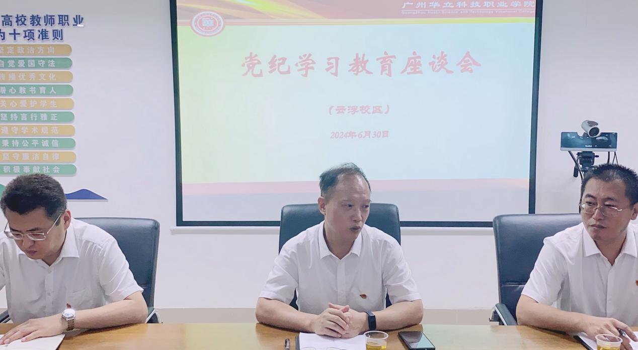 6月30日上午,学校党委书记陈良声深入云浮校区调研党纪学习教育开展情况并主持召开座谈会。学校党委副书记、副校长、云浮校区党委书记高尧来,党委委员、校长助理张剑锋,云浮校区党委、云浮校区各二级学院基层党组织主要负责同志参加调研座谈。