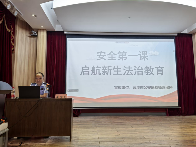 9月23日晚上,广州华立科技职业学院云浮校区图书馆一楼报告厅迎来了一场别开生面的安全教育活动。学校保卫处邀请都杨派出所黄警官为2024级新生讲授以“启航新生 法治教育”为主题的安全第一课,旨在增强新生的安全意识和法治观念,为他们的校园生活保驾护航。