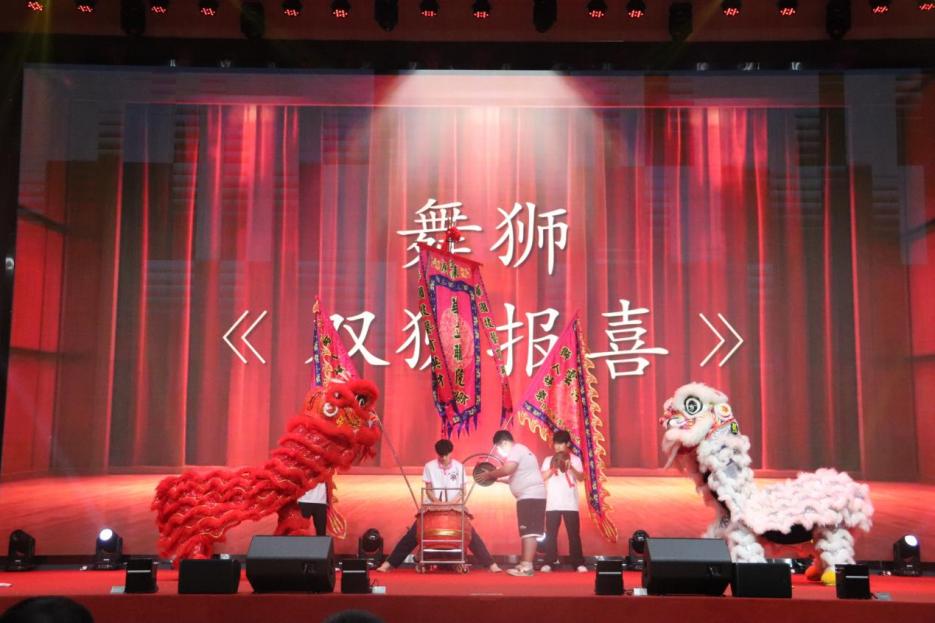 晚会在璀璨的灯光下缓缓拉开序幕,进入第一个篇章“梦想启航”。首先,由龙狮协会带来的舞狮《双狮报喜》,以其矫健的身姿和喜庆的氛围,为晚会增添了浓厚的传统文化色彩,寓意着新同学们将在这里迎来充满希望与活力的学习生活。