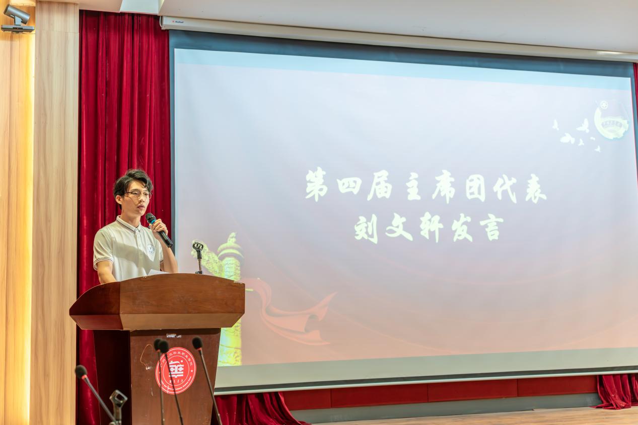 第四届主席团代表刘文轩同学上台发言,他对学院领导和老师们表达了由衷的感谢,并热烈欢迎新加入组织的24级成员。他希望新一届团委学生会应更加深刻的认识自己的位置,在各项活动中起到模范带头作用,时刻倾注热血,无私奉献自我,共建学院团委学生会的美好未来。