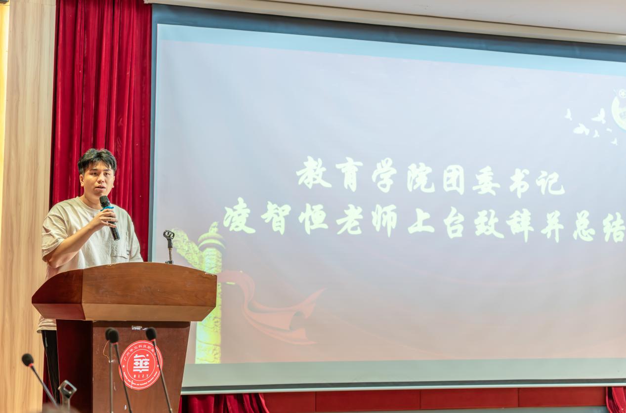 团委书记凌智恒老师上台总结发言,他首先代表学院及全体团委学生会干部欢迎了第四届新干事加入团委学生会大家庭。他强调,团学成员是学院团委学生会工作的中坚力量,每一位成员都肩负着引领思想、服务同学的重要使命。因此,他要求各部门明确职能开展活动,团委学生会成员要做好模范带头作用,处理好工作与学习关系。最后,团委书记表达了对全体团委学生会成员的期望与祝愿,希望大家齐心协力,共同创造更加辉煌的明天。