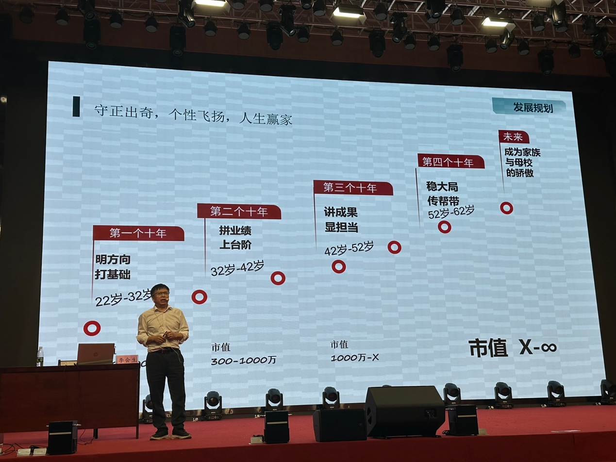 李总还结合国家未来对碳中和人才需求,对大学生的职业规划给出了建设性意见和建议,他指出,在双碳发展领域,当代大学生有着足够的成长空间和发展机遇。他以职业规划的三个十年为脉络,为大家介绍了职业成长发展的重点和注意事项,并鼓励同学们积极投身碳中和事业,为实现国家碳中和目标贡献自己的力量。