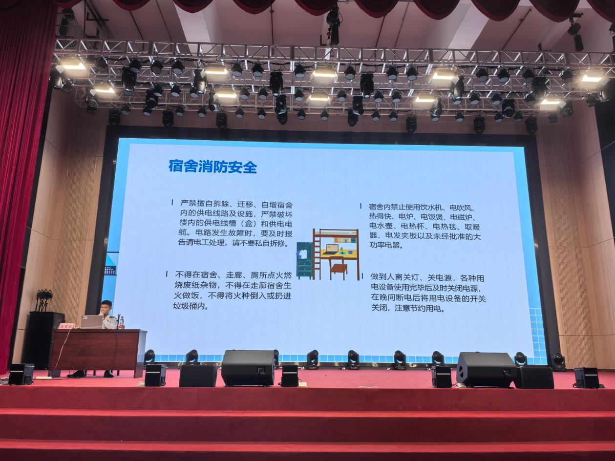 云浮市云安区消防局的龙教官以其丰富的消防安全知识和实践经验,深入浅出地讲解了校园内常见的火灾隐患、预防措施以及火灾发生时的应急处理流程,为与会人员带来了更为专业、深入的消防安全知识分享。