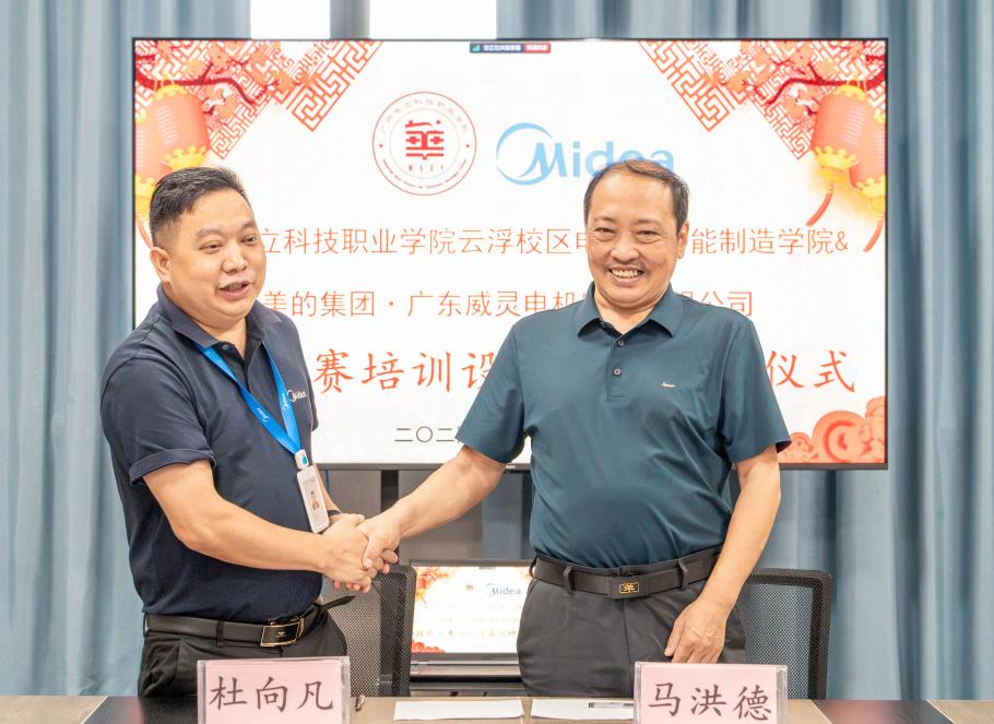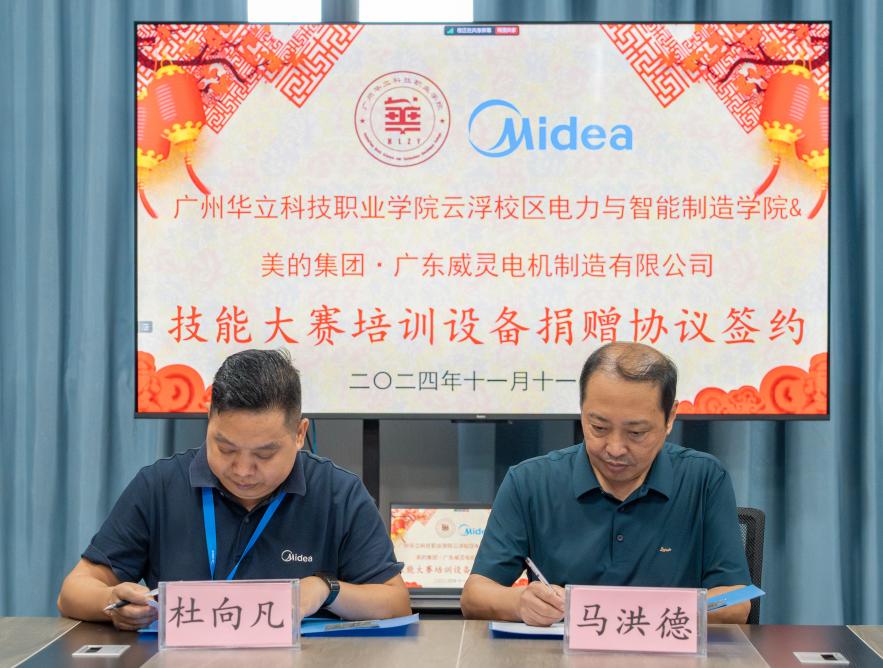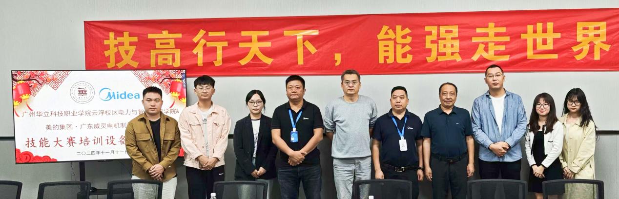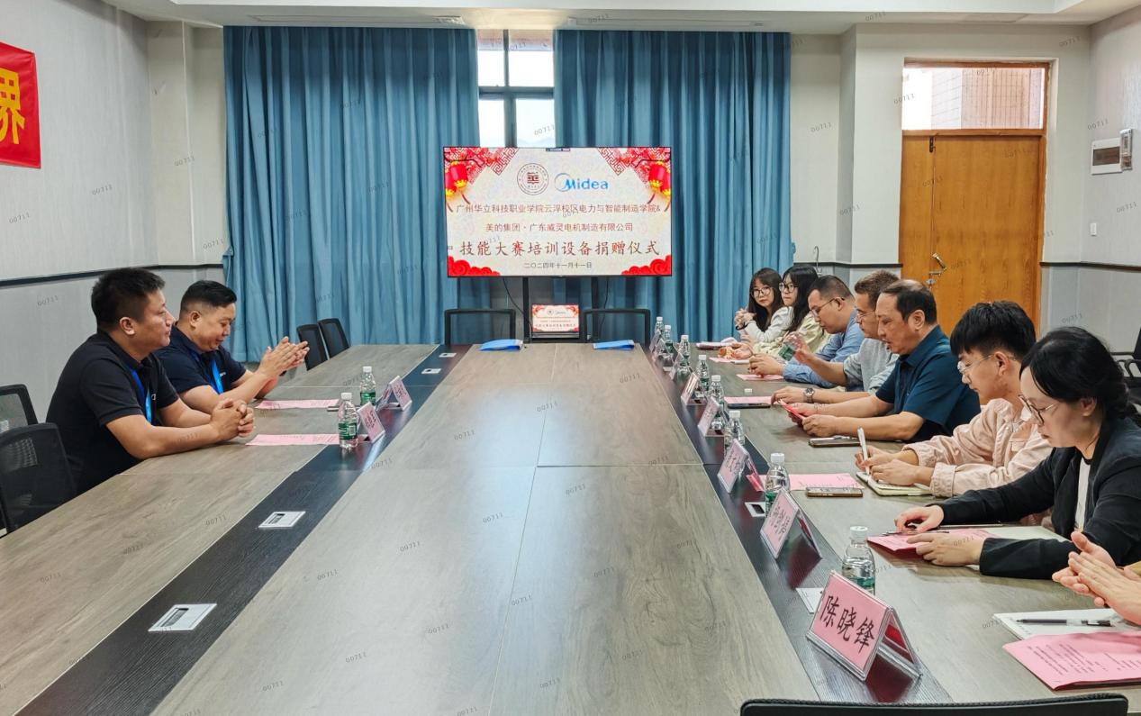 为加强校企深度融合,完善学院技能竞赛实训条件,11月11日上午,“广州华立科技职业学院电力与智能制造学院与美的集团·广东威灵电机制造有限公司捐赠技能大赛培训设备仪式”在云浮校区二教907竞赛培训工作室隆重举行。美的威灵公司校企办杜向凡主任、郑胜军经理,我校党委委员、校长助理张剑锋,电力学院副院长马洪德,教务处实践科科长甘英浩及学院骨干教师参加。仪式由云浮校区电力学院校外教学负责人杨咏怡主持。