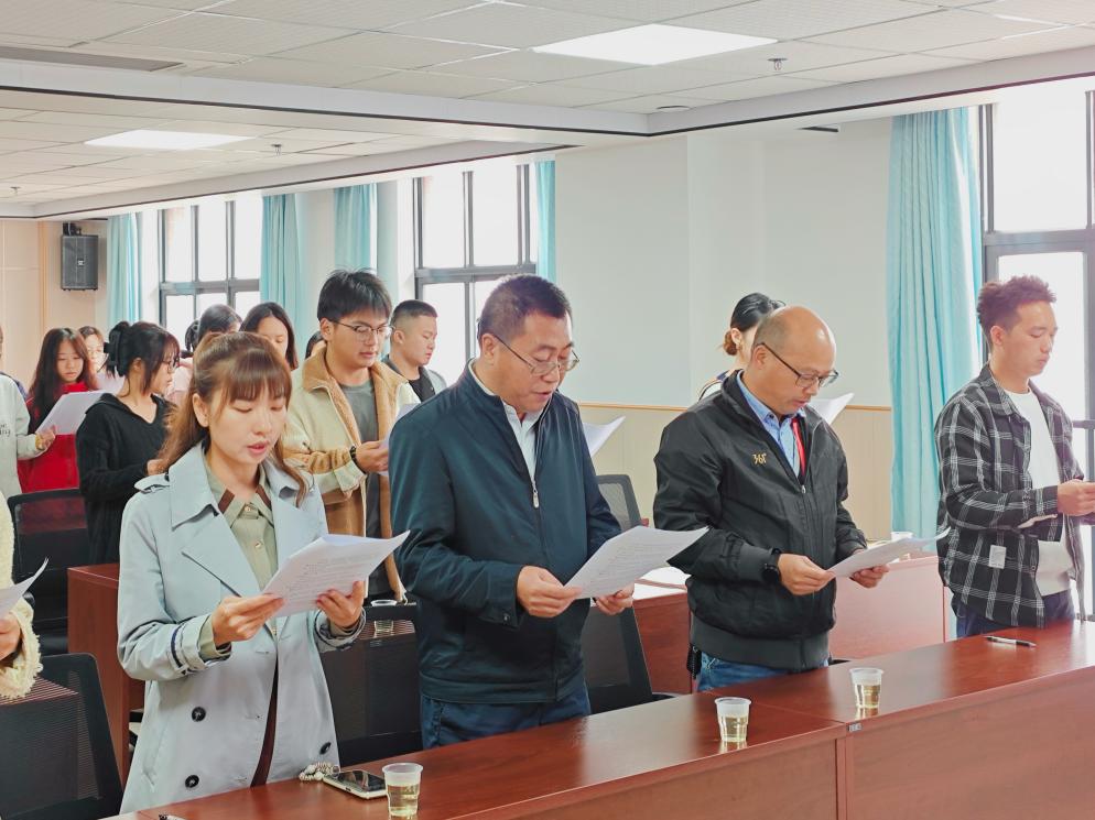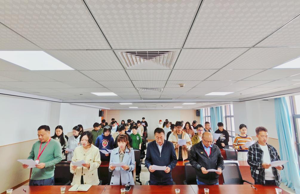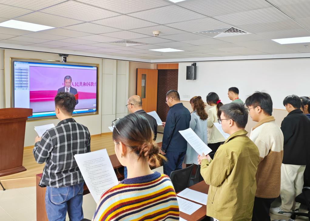 12月4日清晨,随着第一缕阳光洒满校园,图书馆七楼会议室响起了整齐而响亮的宪法晨读声。来自全校各部门的教职工代表以及部分学生代表,手持宪法文本,神情庄重地参与了这一场特殊的晨读活动。在领读人的带领下,大家一字一句、铿锵有力地诵读宪法条文,感受着宪法作为国家根本大法的权威与力量。