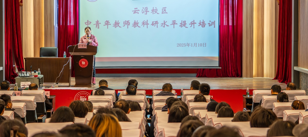 2025年1月10日,云浮校区教务处在图书馆一楼小礼堂举办了《中青年教师教科研技能水平提升培训》讲座。本次讲座特邀教育学院姚莹莹、赖梅老师作教科研、教学技能水平跃升专题分享。各二级学院负责人,教科研主任、学科带头人、中青年教师及教务处参加,讲座由科研处科长王秀丽主持。
