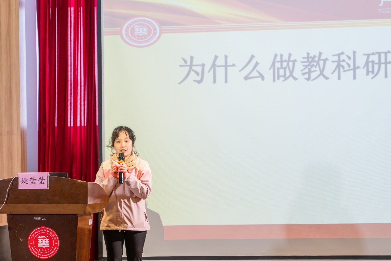 姚莹莹老师以“教师个人教学科研能力跃升及创新能力的实践之旅”为主题,从教科研的含义,从事教科研的起因、怎么做教科研,以及教科研项目申报的程序、技巧等几个方面进行经验分享;与广大中青年教师深入探讨了如何在日常教学和科研中实现自我突破。
