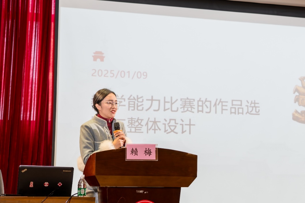 赖梅老师以“教学能力比赛的作品选题与整体设计”为主题,从美育案例展示、申报书构架、教师教学能力比赛平台资源介绍、职业教师面临的挑战、职业院校教师教学比赛方案解读,职业院校教师教学能力提升等几个方面进行经验分享。为广大中青年教师提供实践经验,帮助大家明确教学能力比赛中的目标和方向,为未来参加教学能力大赛打下基础。