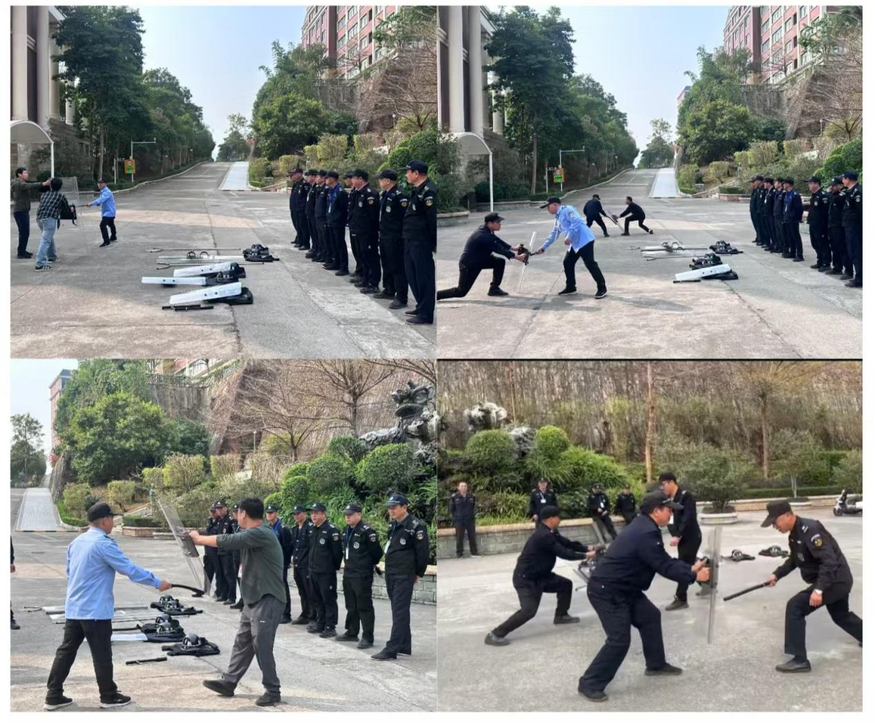 为进一步提升校区安保人员的安全意识和应急处置能力,2月20日,我校云浮校区保卫处组织安保人员进行防暴演练与消防器材使用演练活动。此次演练旨在通过实战模拟,增强安保团队在面对突发事件时的快速反应和有效处置能力,确保校园安全稳定。