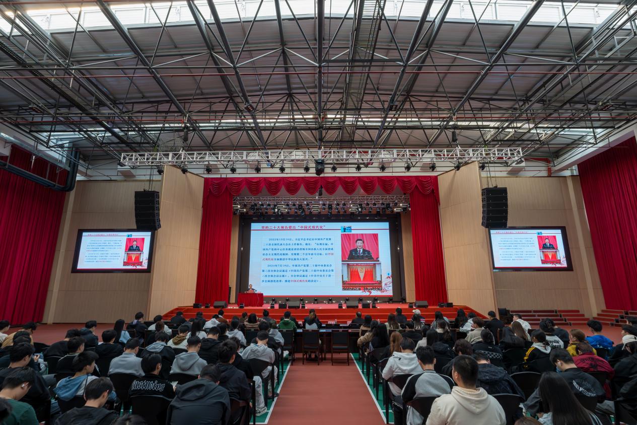 “从现在起,中国共产党的中心任务就是团结带领全国各族人民全面建成社会主义现代化强国、实现第二个百年奋斗目标,以中国式现代化全面推进中华民族伟大复兴。陈良声书记以党的二十大报告和党的二十届三中全会通过的《中共中央关于进一步全面深化改革、推进中国式现代化的决定》为切入点,围绕“中国式现代化的探索历程、中国式现代化的中国特色、中国式现代化的本质要求、中国式现代化的战略支撑、中国式现代化的伟大成就、在新征程上展现青春作为”六个篇章进行详细讲解。通过深入浅出的案例阐述和丰富的数据呈现,从经济、政治、文化、社会、教育等方面全面深入介绍了在中国式现代化前进的道路上所取得的成就,引导同学们深刻体会中国式现代化的丰富内涵和现实意义。