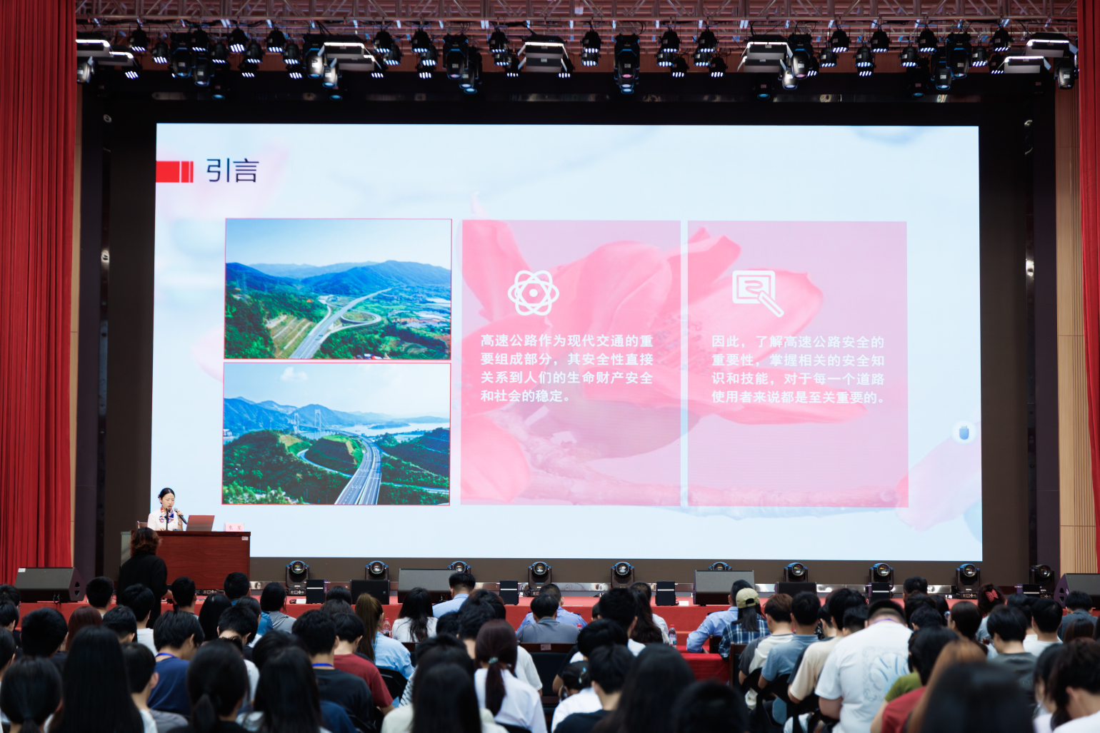 汕湛高速公路的工作人员袁星围绕“高速公路的安全”做专题宣讲。她从高速公路的行车规范、应急处理等方面入手,结合实际案例,为同学们上了一堂生动的安全教育课。袁女士强调,高速公路车速快、流量大,驾驶员必须时刻保持高度警惕,严格遵守交通法规,确保行车安全。