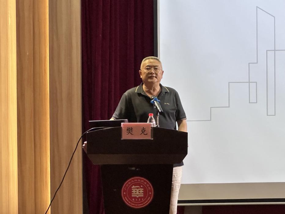 随后,樊克高级工程师以“驾驭新质生产力,成就应用型英才”为题作专题讲座。他指出,当前大数据、无人机航测、高精度测绘等技术正加速重构测绘、地质、地理信息等行业,新质生产力对人才提出三重核心要求:实战能力、创新思维。他强调,高职/应用型本科教育需直面学生基础差异的现实,将 “因材施教” 作为破局关键,助力不同起点的学生找到成长快车道。