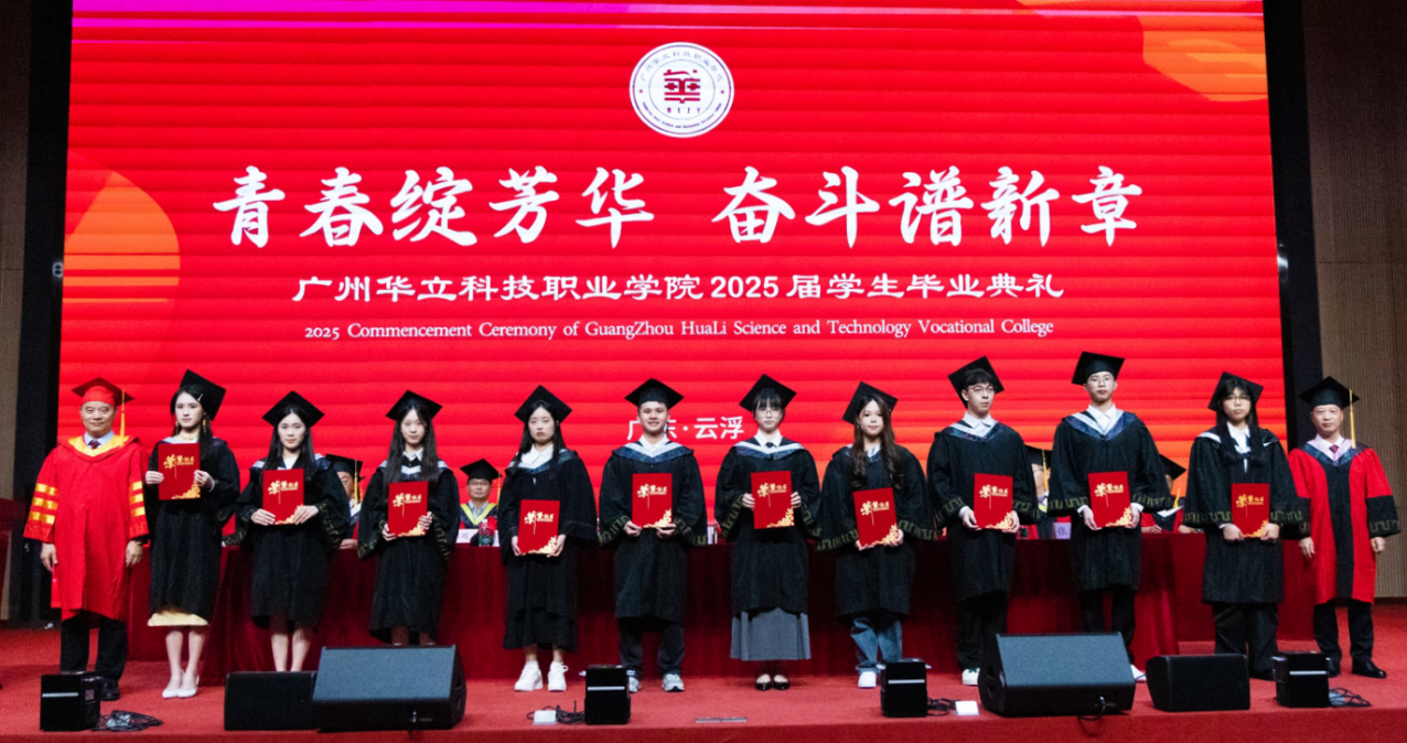 青春绽芳华,奋斗谱新章。“红砖学府新翠杨,华立湖畔紫荆香,座座寻梦的学堂,创新驱动勇担当。”华立之光,榜样力量。校党委书记陈良声宣读优秀毕业生表彰决定,校长廖俊杰和校党委书记陈良声为优秀毕业生颁发荣誉证书。校领导为现场全体毕业生颁发毕业证书,见证华立职院学子的荣耀时刻,同时也无声宣告:学业的稻穗已然饱满垂金,理想的征途此刻在脚下磅礴展开。无数年轻面庞上,泪水与笑容交织闪耀,每一滴都折射着求学时光的重量与对未来的无垠憧憬。