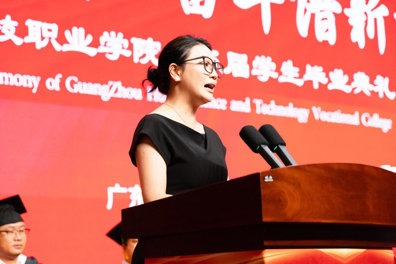 青春回响,美好祝愿。教师代表何灿老师以温情脉脉的语调,告诉同学们“毕业不是终点,而是新起点”。她叮嘱大家要保持学习的热情,不断更新知识,提升自己;遇到困难时,不要退缩,用在学校学到的坚韧精神去克服。希望同学们带着对梦想的执着,用所学的知识和技能,书写属于自己的精彩人生。