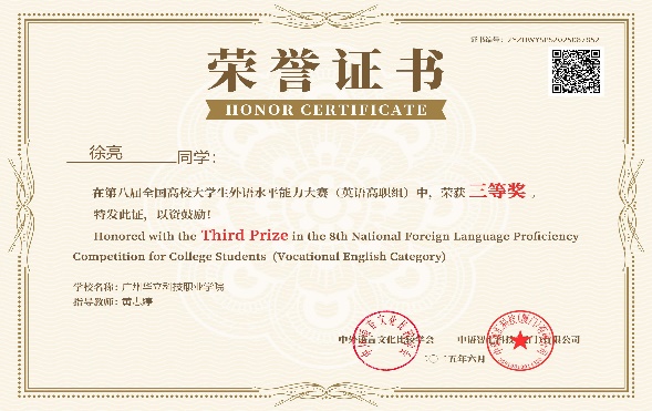 近年来,我校经济管理学院始终高度重视学生外语应用能力的培养,坚持“以赛促教、以赛促学”,将竞赛与日常教学深度融合,学院外语教研室组建专业指导教师团队,针对大赛内容开展系统性培训,通过模拟实战、个性化辅导等方式提升学生专业综合能力。此次获奖不仅是对学生刻苦学习的肯定,也是我校外语教学改革成果的生动体现。未来,经济管理学院将继续深化外语教学改革,优化“岗课赛证”融通培养体系,为学生搭建更多展示才华的舞台,助力培养更多高素质国际化的技术技能人才。