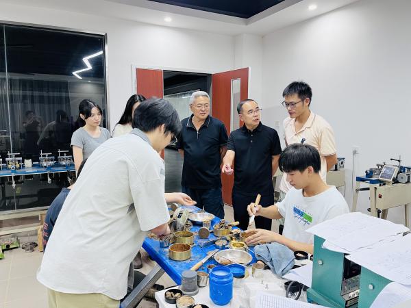 实践操作是本次竞赛的重要环节,也是参赛学子们的重点备赛方向。三位学生在两位老师的指导下,针对土工试验模块中的多个关键项目展开专项训练,涵盖土样开样、密度试验、含水率试验、界限含水率试验(液塑限联合测定法)、及数据处理等内容。这些试验均为地质工程勘察的核心环节,学生们认真对待每一次试验操作,从仪器设备的调试到样本的采集与处理,再到数据的记录与分析,每一个步骤都严谨细致,力求做到精益求精。