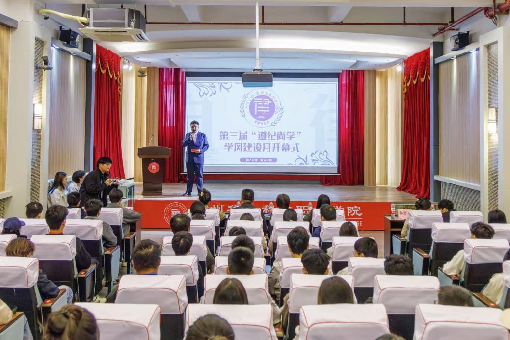 在热烈的掌声中,王洪艳副校长宣布第三届“遵纪尚学”学风建设月活动正式启动。