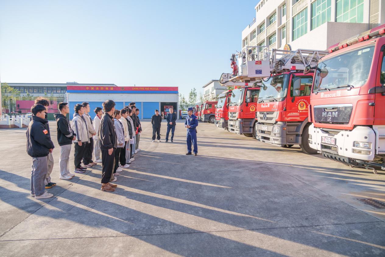 为迎接2025年第34个全国消防日,进一步增强师生消防安全意识与国防观念,深入理解消防救援工作的责任与担当,11月20日下午,广州华立科技职业学院党委委员、校长助理张剑锋,保卫处副处长兼总务处副处长黄兵带领消防协会与国防协会的学生代表,前往云浮市消防救援支队云都大道特勤消防救援站,开展了一场集知识性与趣味性于一体的沉浸式参观体验活动。