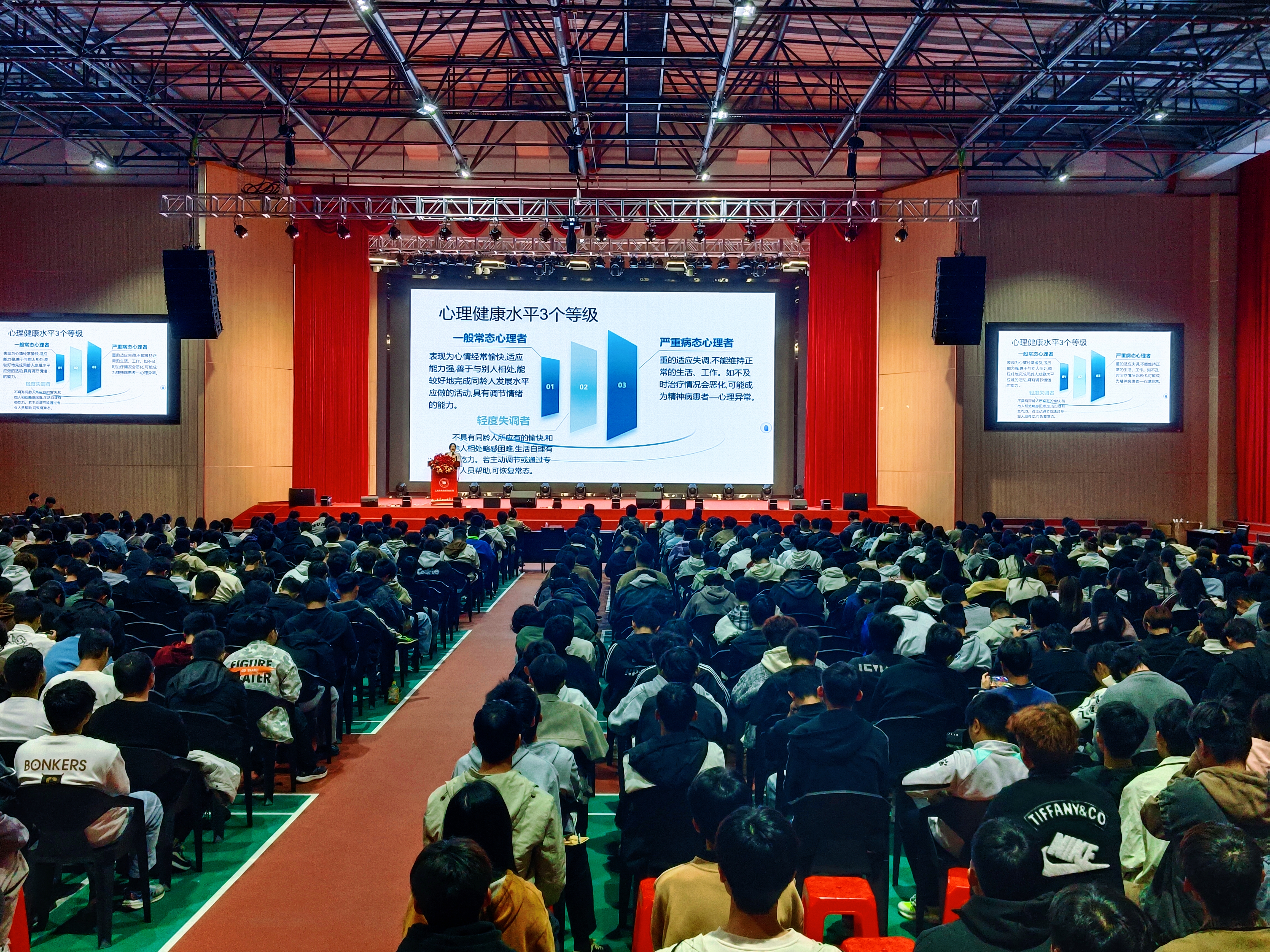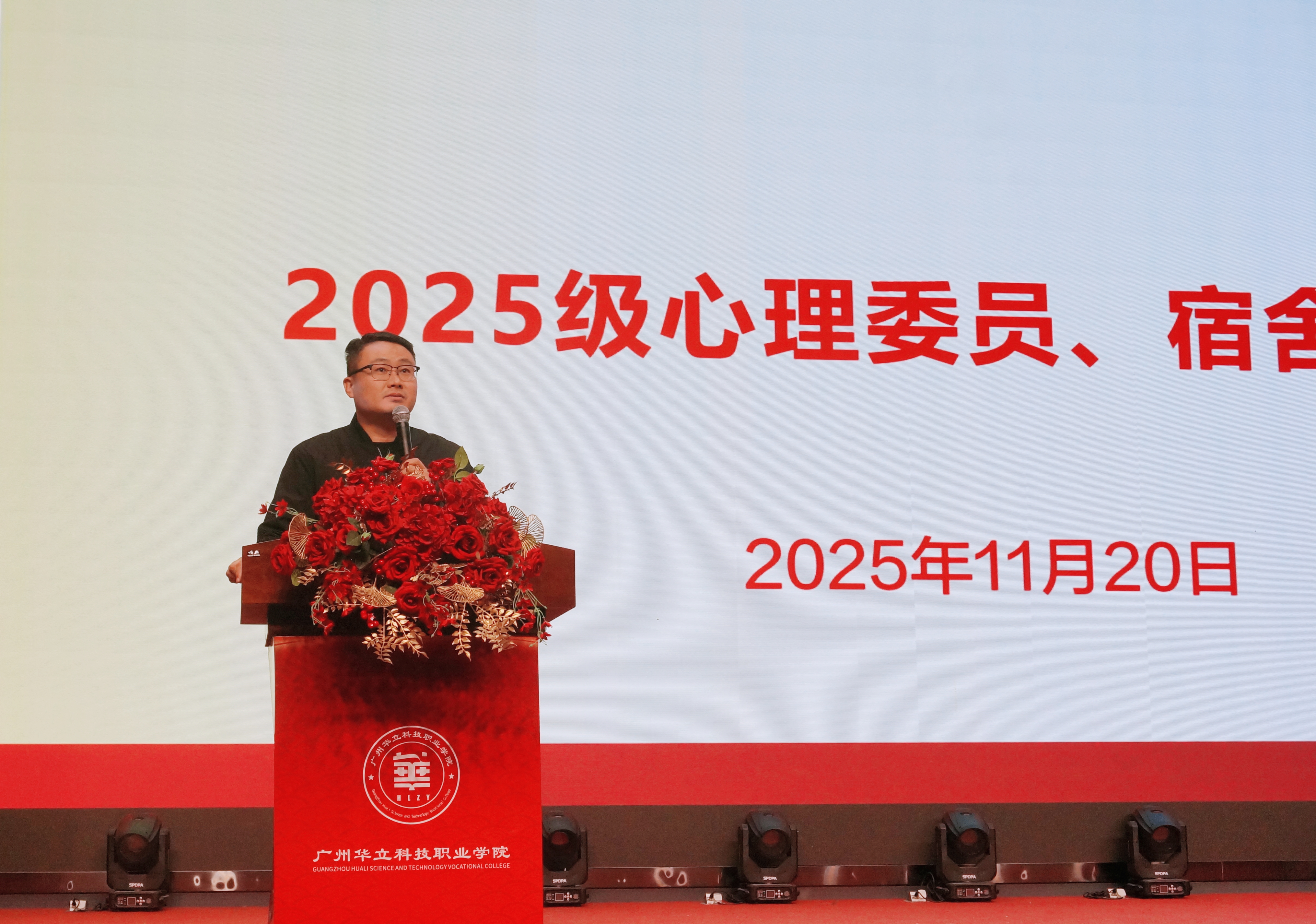 2025年11月20日晚,学生处在文体楼八楼报告厅组织举办了2025级心理委员、宿舍长专题培训会。本次培训以“筑牢安全防线,呵护心灵成长”为主题,近640名心理委员与宿舍长参加。学生处副处长李同同、学生处处长助理杜盈盈,以及生活指导科、心理中心相关教师参加活动。