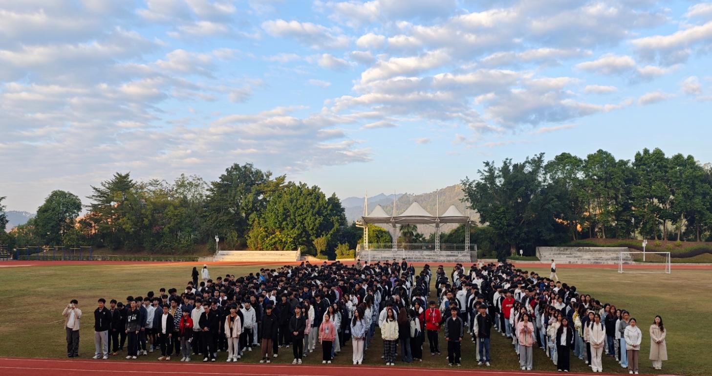 为进一步增强同学们防范电信网络诈骗的意识和能力,筑牢校园安全“防火墙”,11月24日清晨,云浮校区计算机信息工程学院在学校田径场举行了一场以“警惕网络诈骗,筑牢安全屏障”为主题的升旗仪式。学院院长助理黄志强、全体辅导员以及2025级、2024级全体学生共同参与。