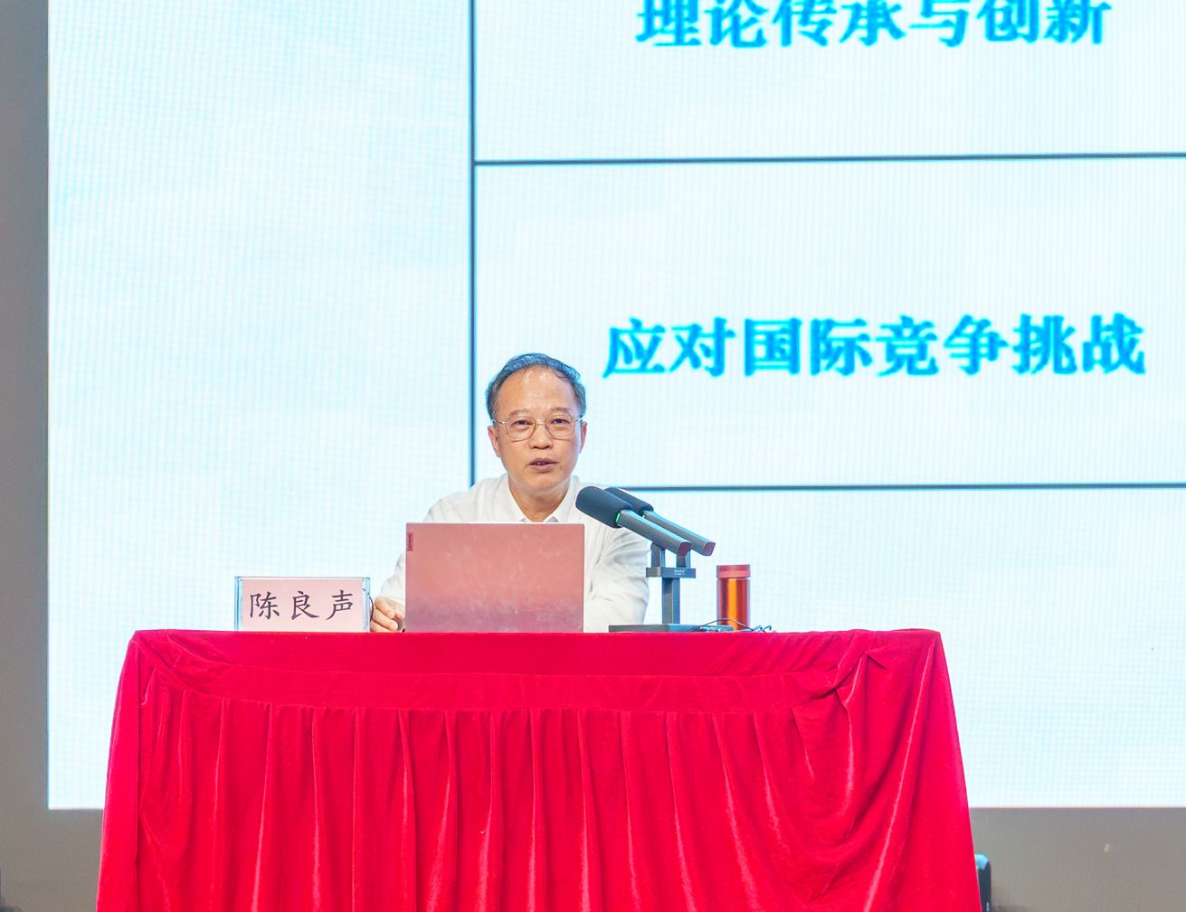 陈良声从“习近平总书记首次提出新质生产力”为切入点,围绕“提出新质生产力的历史背景、关于新质生产力的重要论述、发展新质生产力的现实基础、当代大学生面临机遇与挑战、发展新质生产力注入青春动能”五个方面,层层深入,系统阐述。他指出,新质生产力的提出,既是全球新一轮科技革命和产业变革的必然回应,也是中国经济发展进入新阶段的现实选择,更是应对国际竞争、推动高质量发展的战略举措。它既源于马克思主义生产力理论的传承创新,也凝聚了习近平总书记对国家发展全局的深刻洞察与前瞻思考。