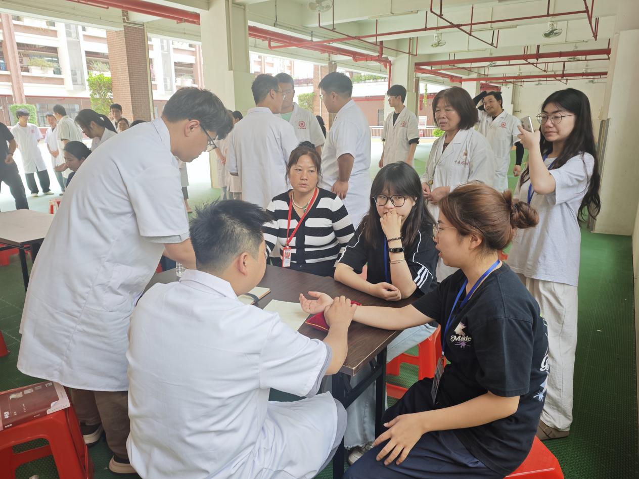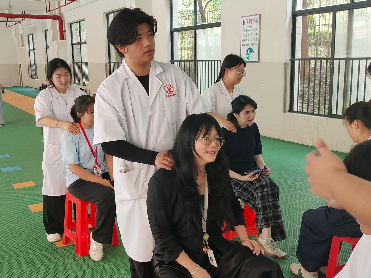 活动现场分设中医问诊、推拿调理、血压测量等便民服务专区。学院师生团队为中英文教职工把脉问诊、推拿舒缓,结合中医辨证理论,量身定制个性化健康调养方案;同时面向在校学生开展八段锦示范教学,用专业的中医技艺、暖心的志愿关怀,为青少年身心健康保驾护航,筑牢校园健康防线。