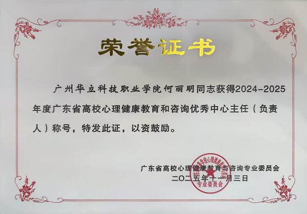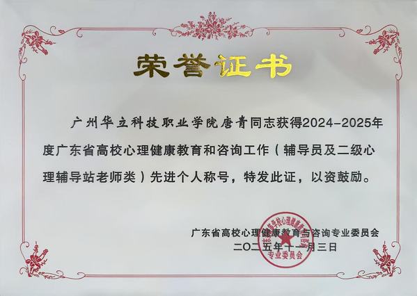 我校荣获2024-2025年度广东省高校心理健康教育与咨询“先进集体”称号