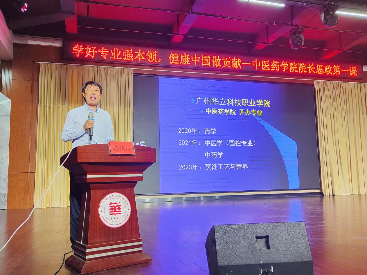 为引导大一新生扣好大学生活的第一粒扣子,2023年9月6日晚,中医药学院杨钦河院长为2023级新生讲授思政第一课——学好专业强本领,健康中国做贡献。在图书馆八楼演播厅,1300余名新生与全体辅导员齐聚一堂,聆听了这场盛宴。