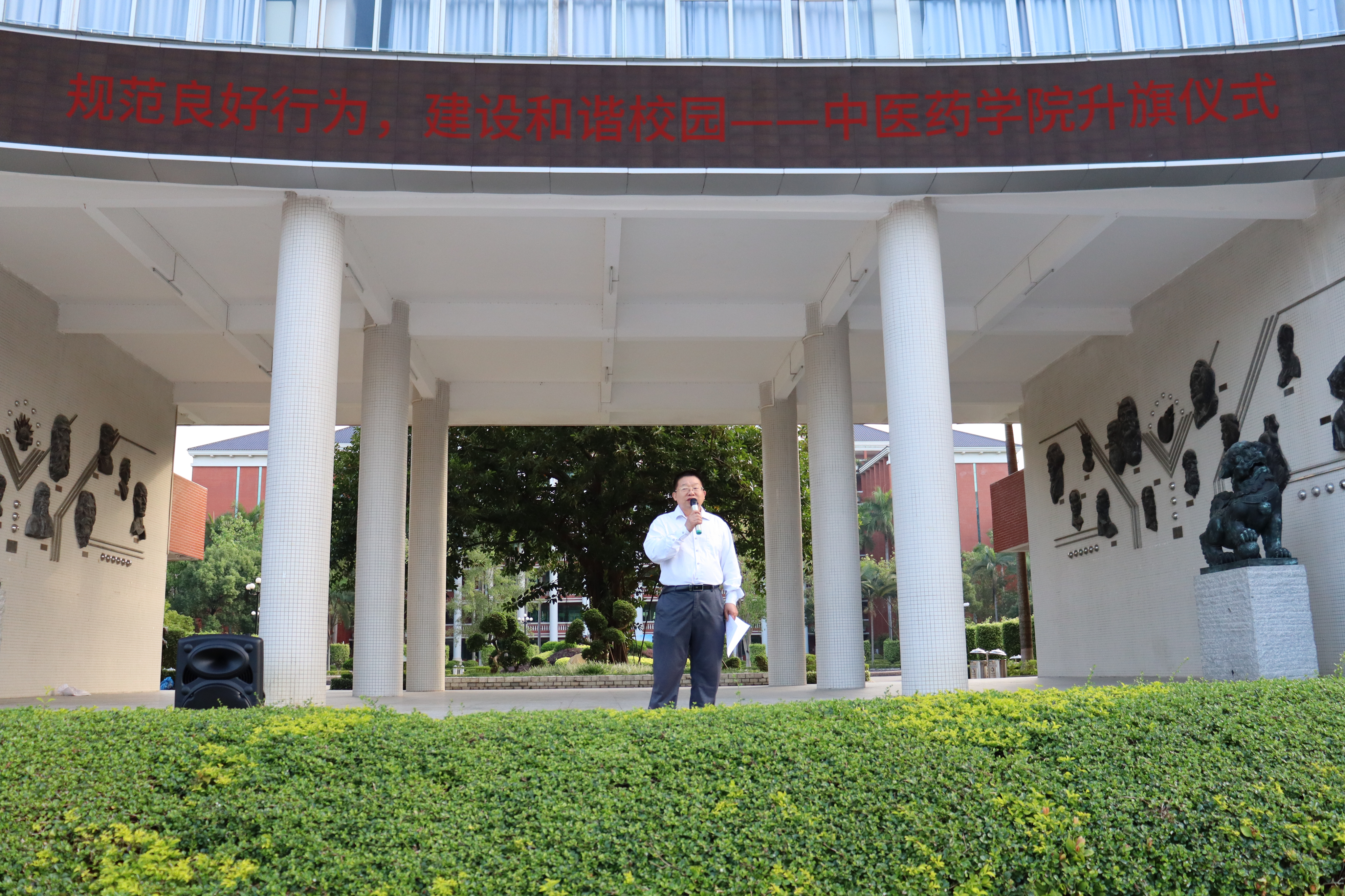 希望通过本次升旗仪式,中医药学院全体同学能够严格规范言行,从自身做起,从点滴做起,争做文明学生,共创和谐校园!努力成为全面发展的社会主义建设者和接班人!