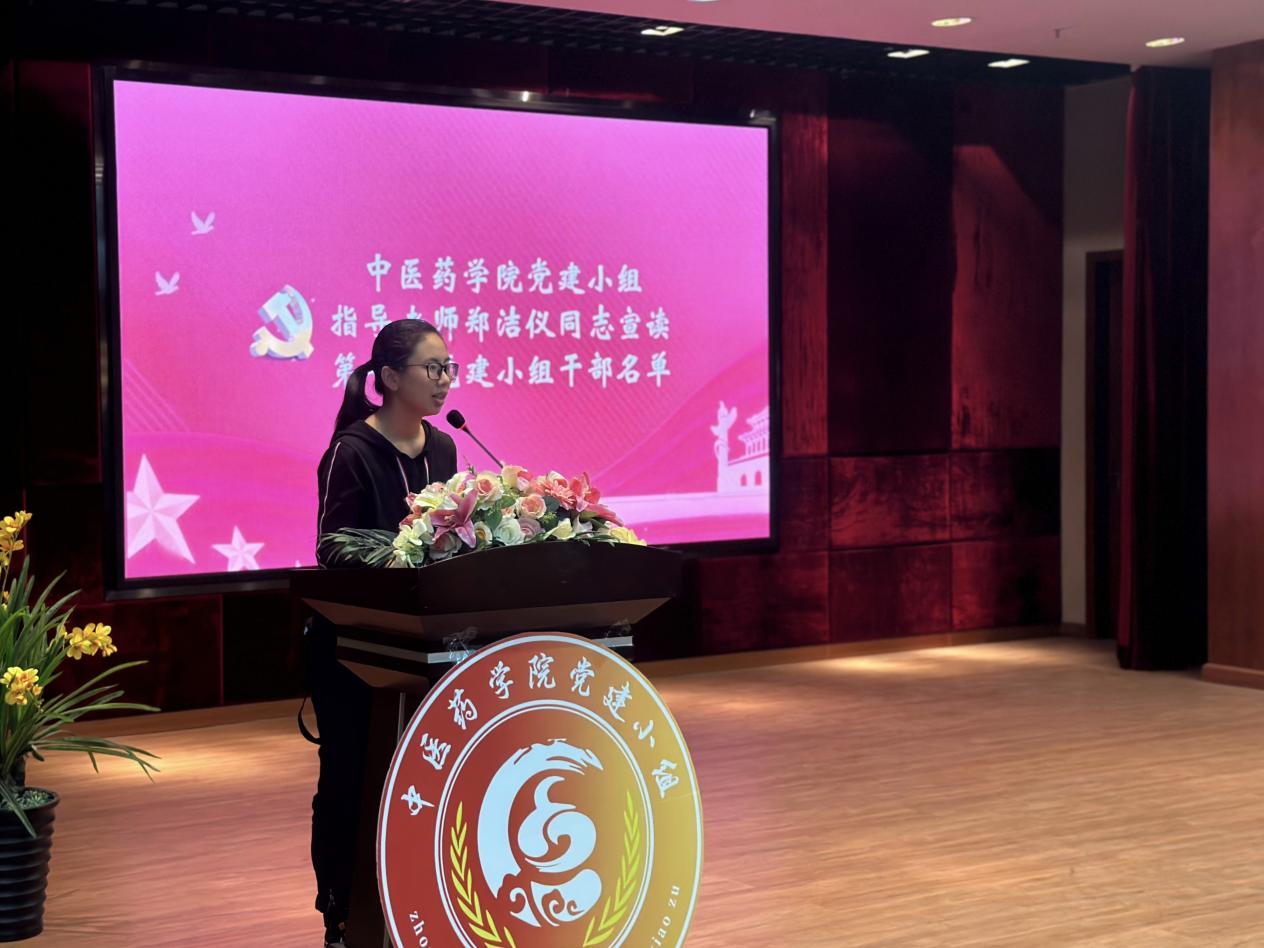 中医药学院直属党支部组织委员、党建小组指导老师郑洁仪同志宣读干部名单